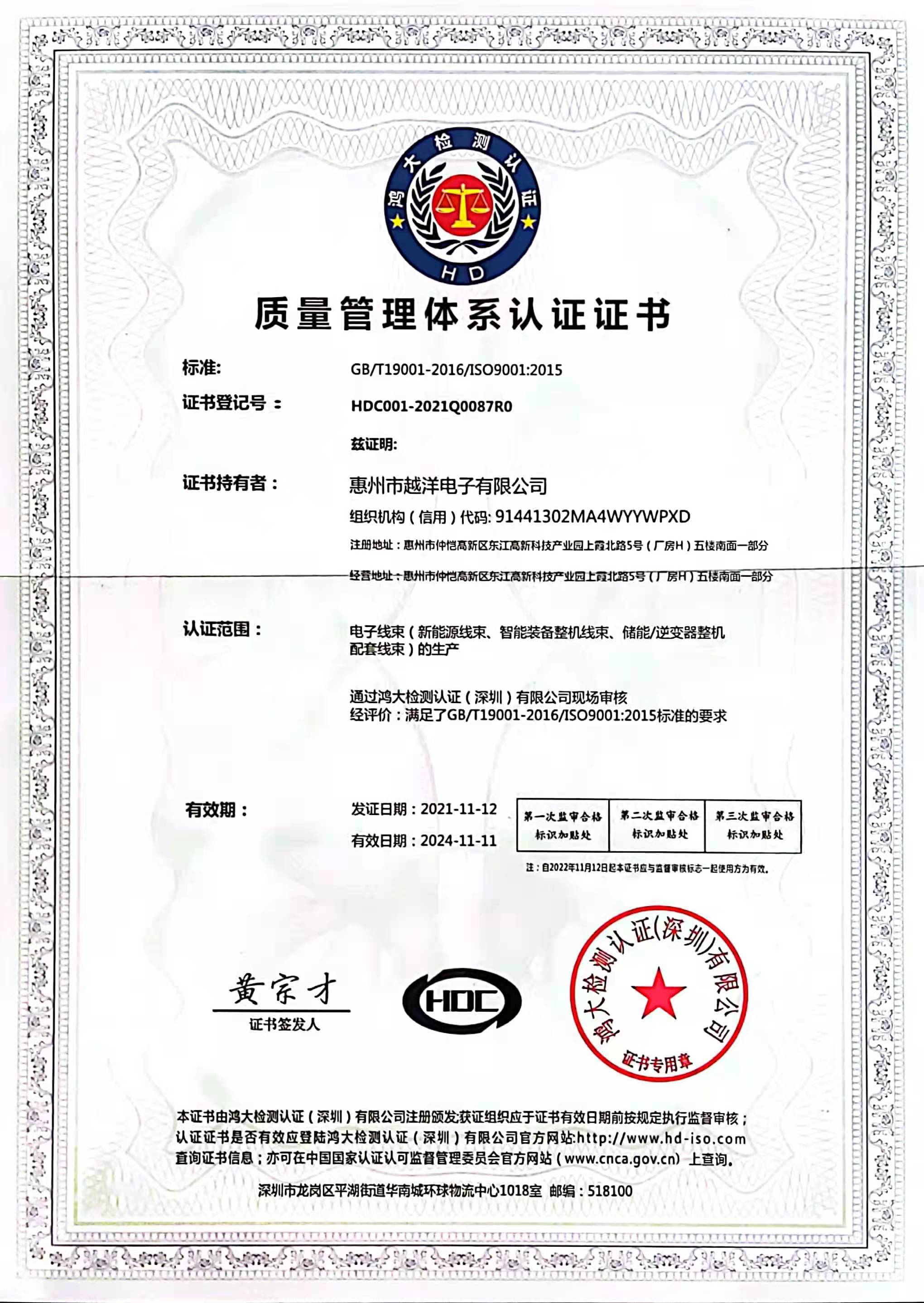 • 質量管理體系認證證書